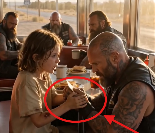 El rostro del motociclista se endureció, adoptando una expresión que la niña aún no comprendía, pero los otros motociclistas sí.