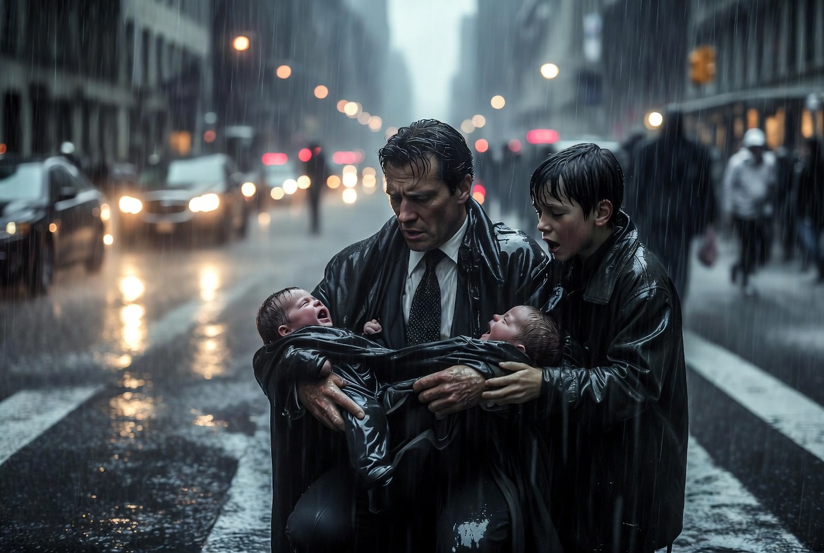 At the hospital, doctors rushed the twins away. Eli tried to follow, but his legs gave out. Adrian caught him before he hit the ground, steadying him like a father would.