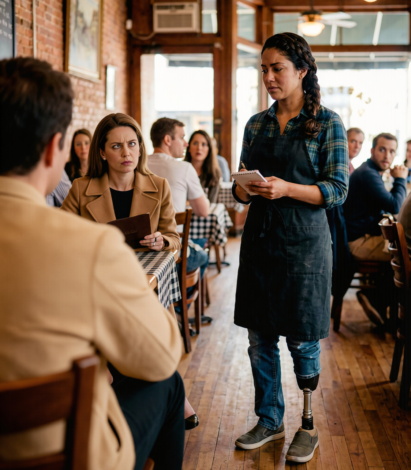 Every shift began the same way—with the sound of my prosthetic leg echoing softly across the polished wood floors.