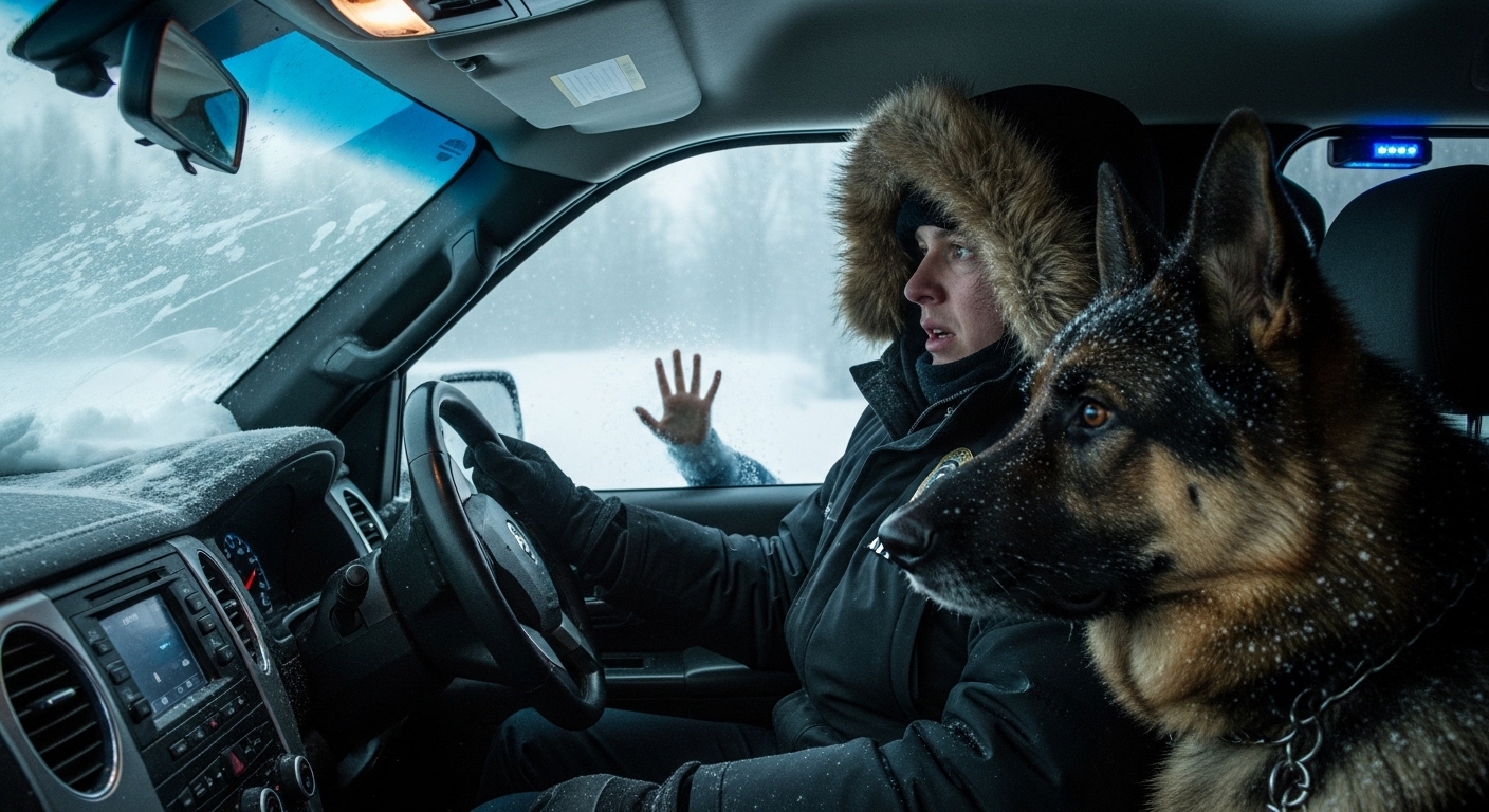 My K9 partner didn’t hesitate. The Belgian Malinois immediately turned his back to the car, facing the impenetrable whiteout, his muscles coiled tight like a spring. He was scanning the storm, his nose working overtime to catch any scent of a threat over the bitter wind.