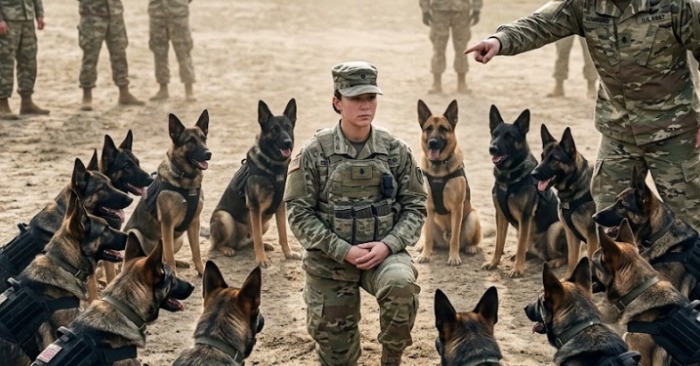 Un geste bref et brusque de la main – et en quelques secondes, quinze chiens d’assistance entrèrent dans la cour. De grands bergers belges malinois, harnachés tactiquement, se déplaçaient avec précision et synchronisation, tels un seul organisme. Les laisses se tendirent, leurs pattes s’enfoncèrent fermement dans le gravier et leurs yeux se fixèrent sur la cible..