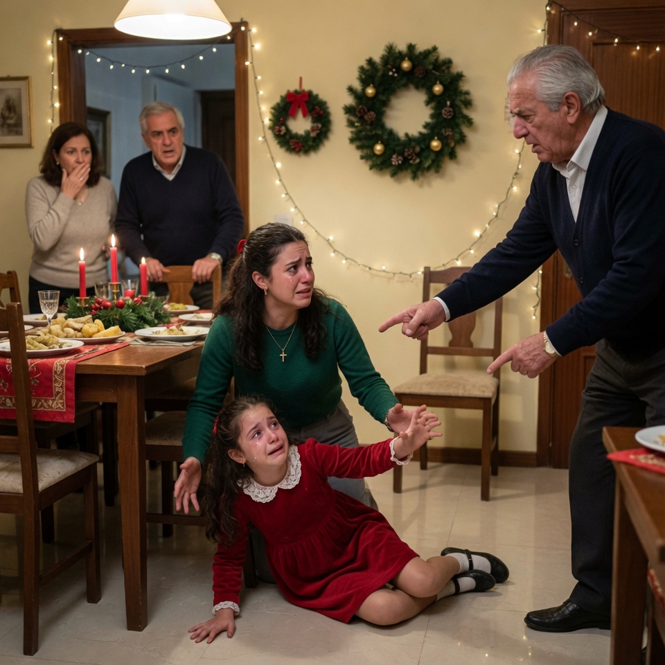 Mi papá empujó a mi hija en plena cena de Navidad para darle el lugar a su “nieta de sangre”… sin saber que en mi bolsa llevaba la demanda que los dejaría en la calle.