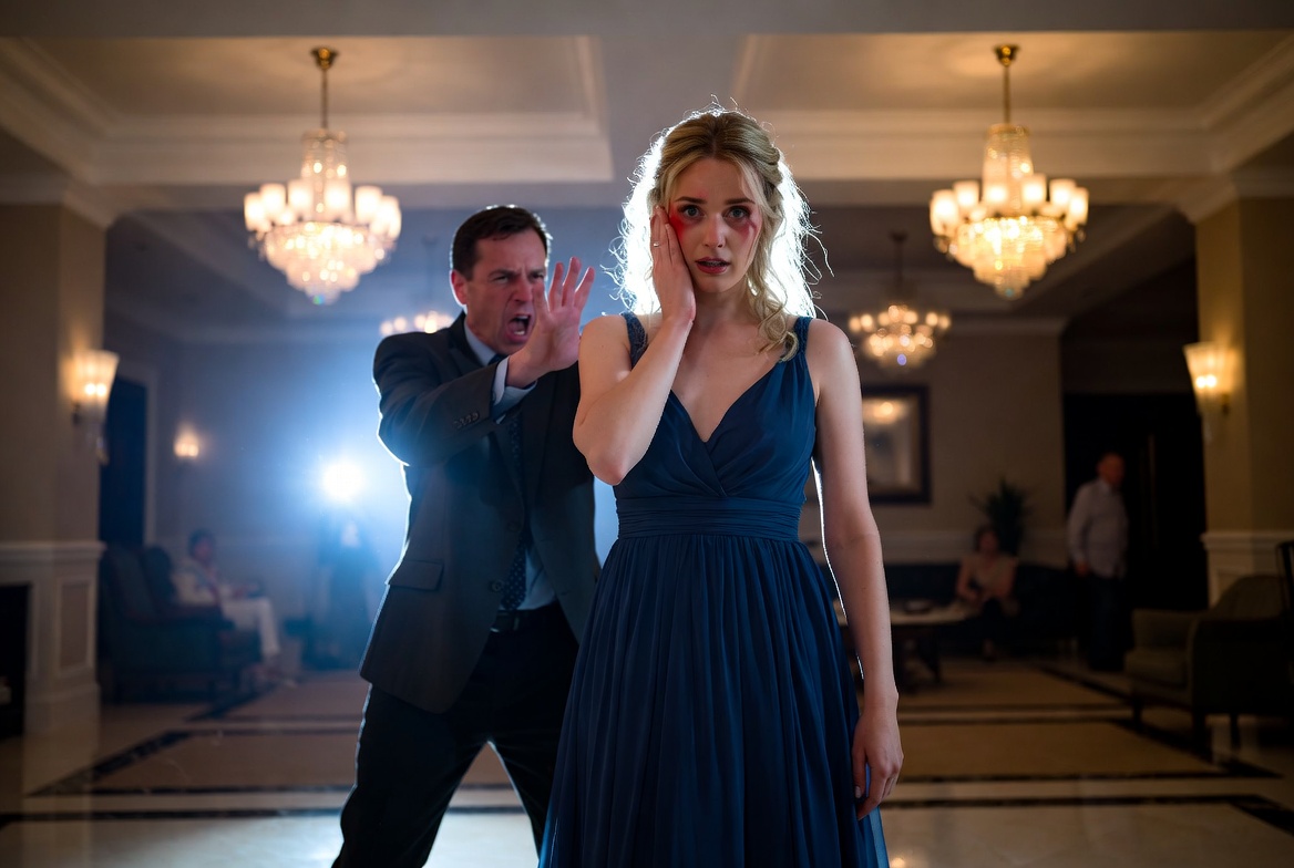 The manager stormed over, his face twisted with irritation. “You don’t belong here,” he snapped, before his hand struck my face. The sound echoed through the lobby. Guests froze. Staff looked away.