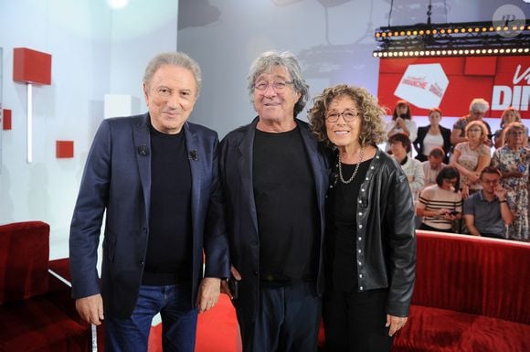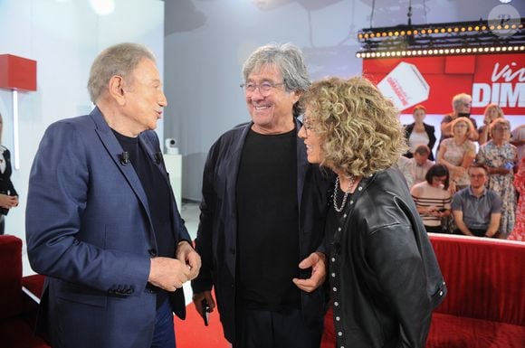 Exclusif – Michel Drucker, Dominique Colonna et Mireille Dumas lors de l’enregistrement de l’émission “Vivement dimanche” à Paris, FRanxce, le 9 septembre 2025 et diffusée le 12 octobre 2025 sur France 3. © Guillaume Gaffiot/Bestimage