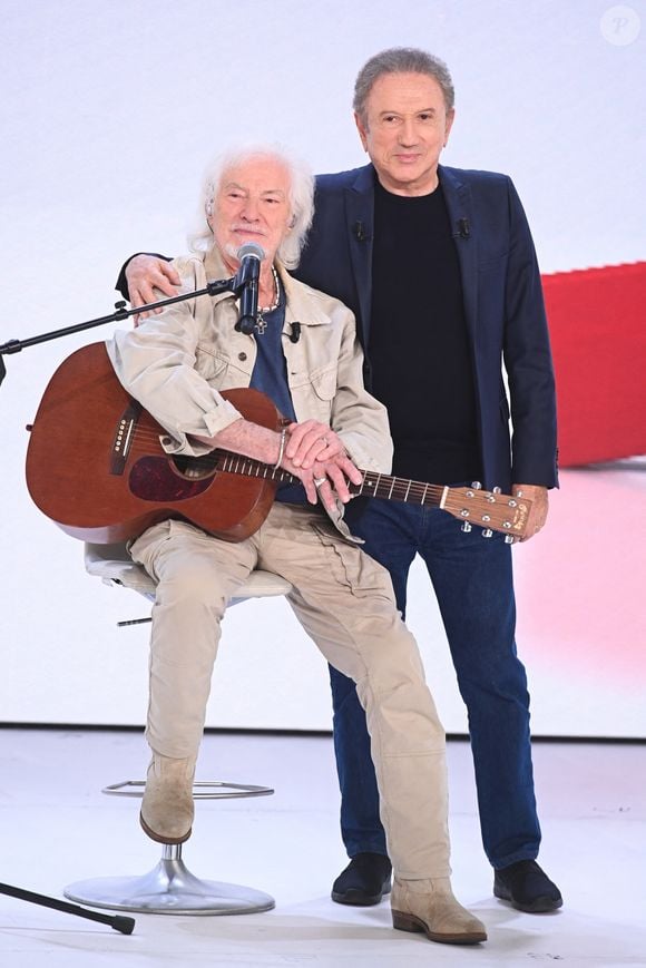 Exclusif – Hugues Aufray et Michel Drucker lors de l’enregistrement de l’émission “Vivement dimanche” à Paris, FRanxce, le 9 septembre 2025 et diffusée le 12 octobre 2025 sur France 3. © Guillaume Gaffiot/Bestimage